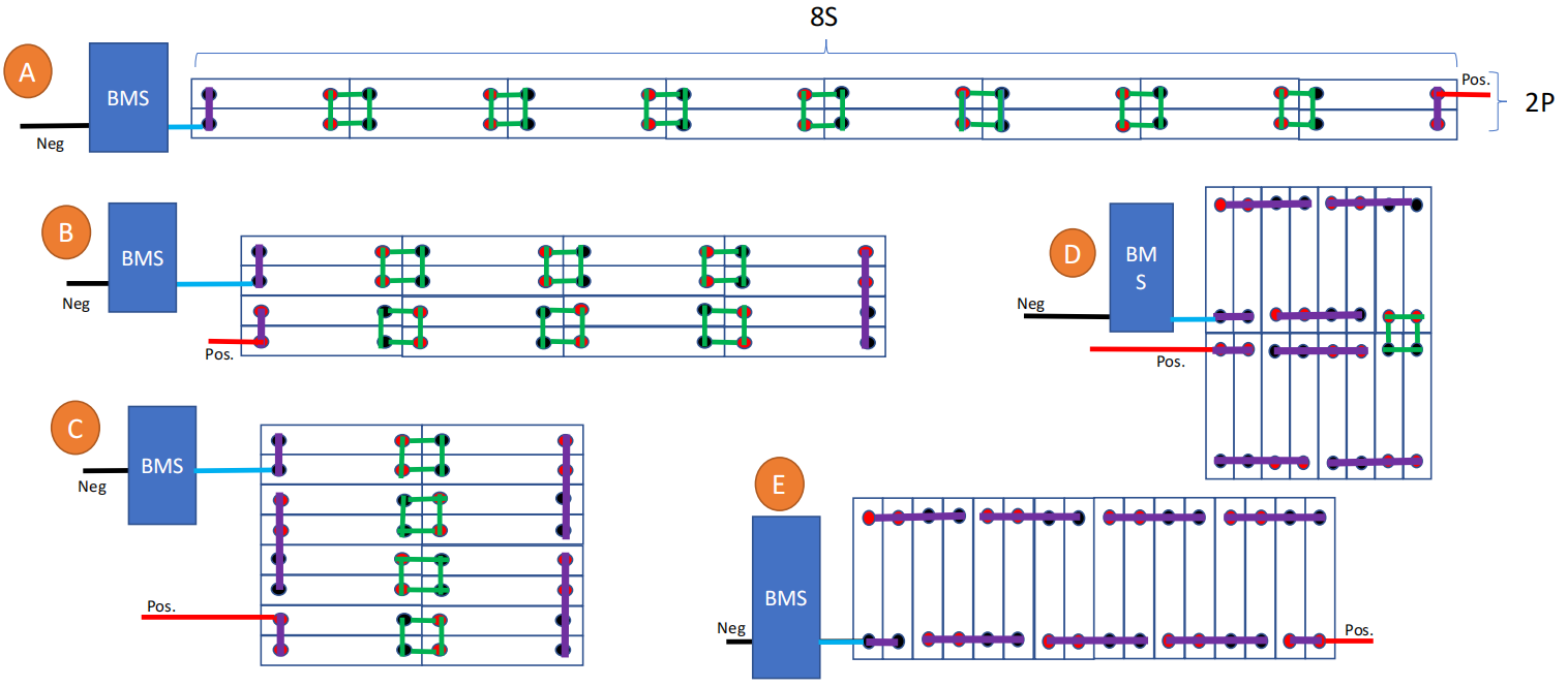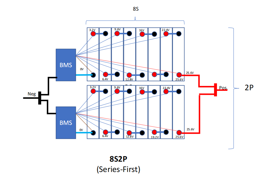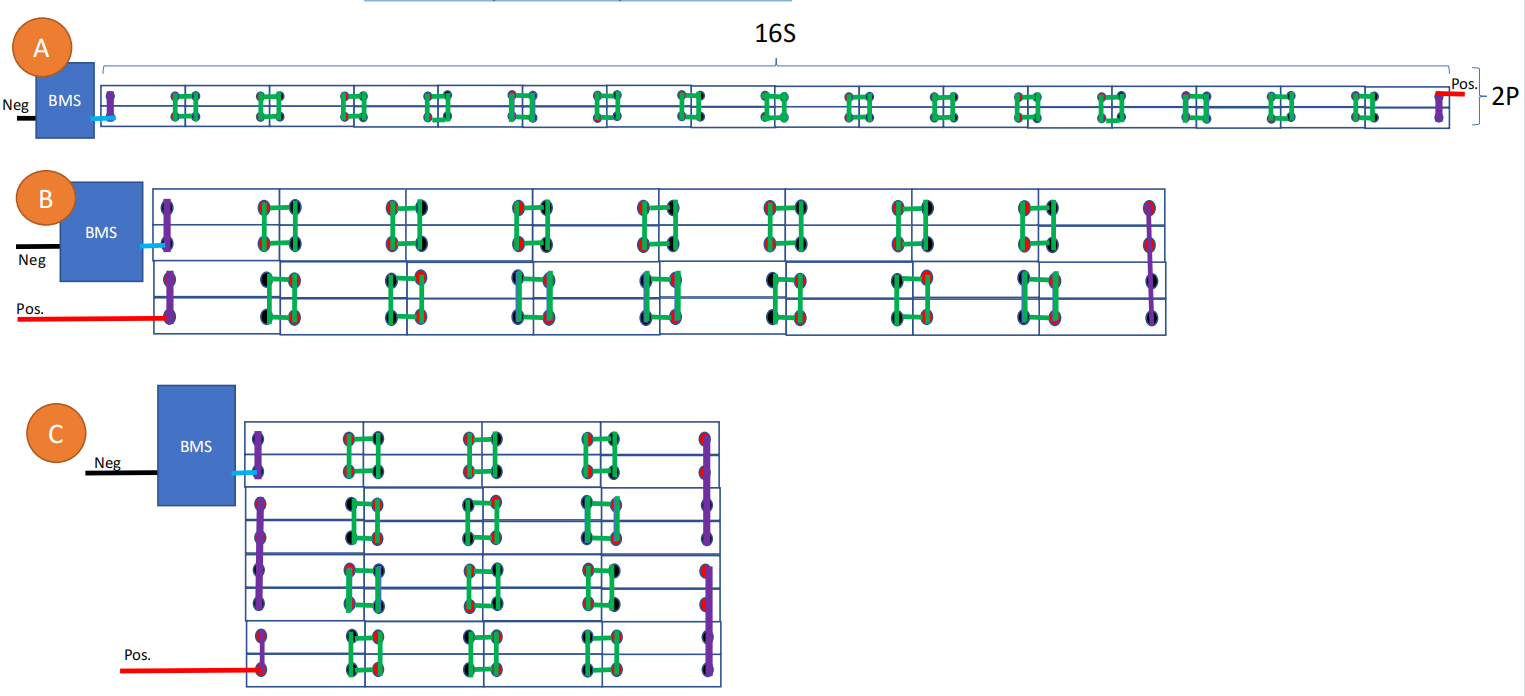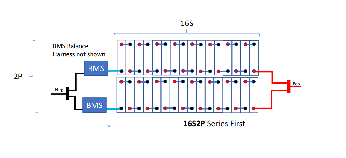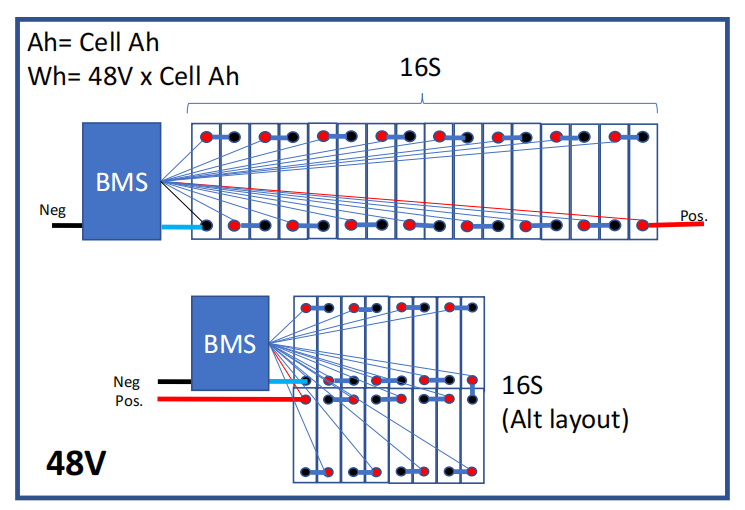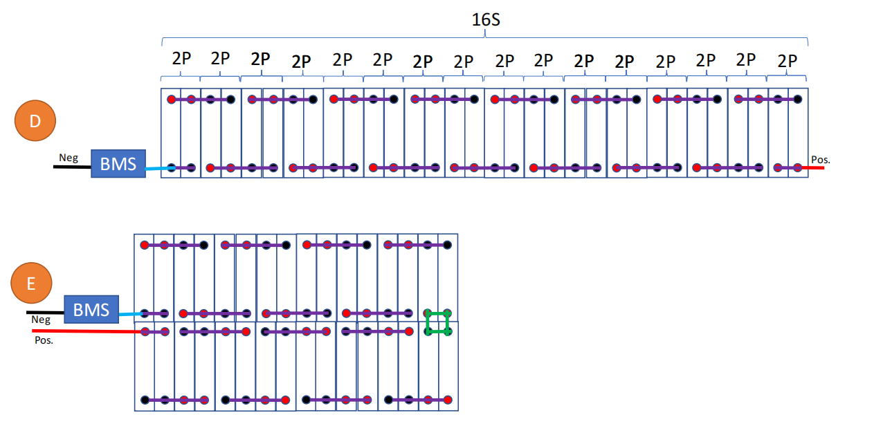 16S2P-Verkabelung für 48-V-Batterien – Erste Serie