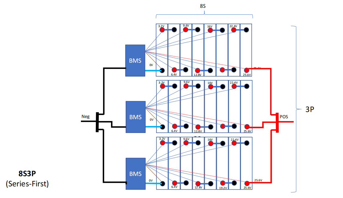 8S3P-Verkabelung für 24-V-Batterien – Erste Serie