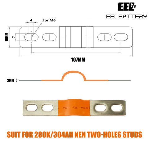 4 Stück flexible 4 Löcher für EVE Doppelgewindebolzen vernickelte Sammelschienen-Anschlussklemmen aus Kupfer Zubehör