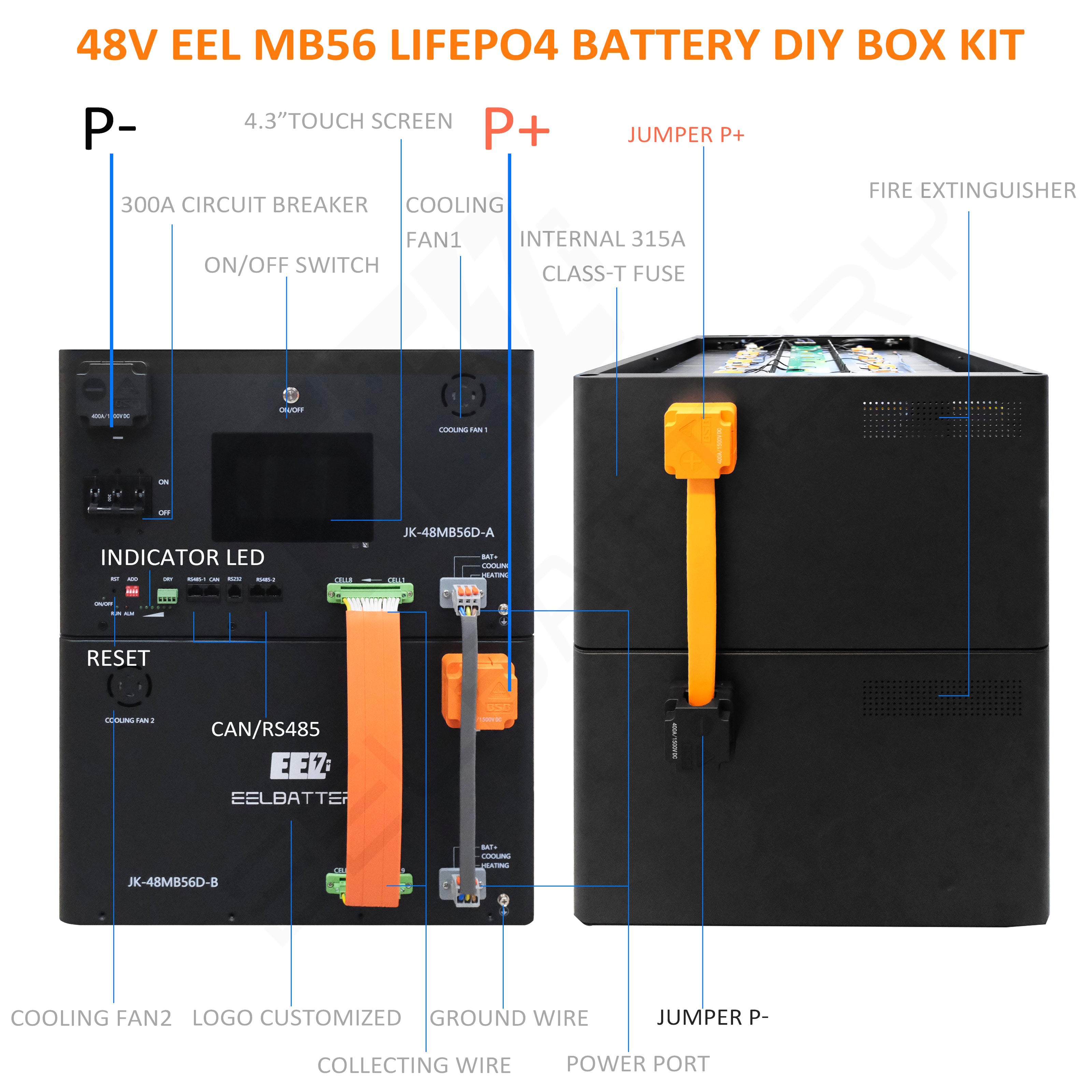 EU Stock-EEL 32kwh 51.2V 16S 628Ah EVE MB56 Battery Box DIY Vertical Kits with 300A JK V19 BMS pre-sale