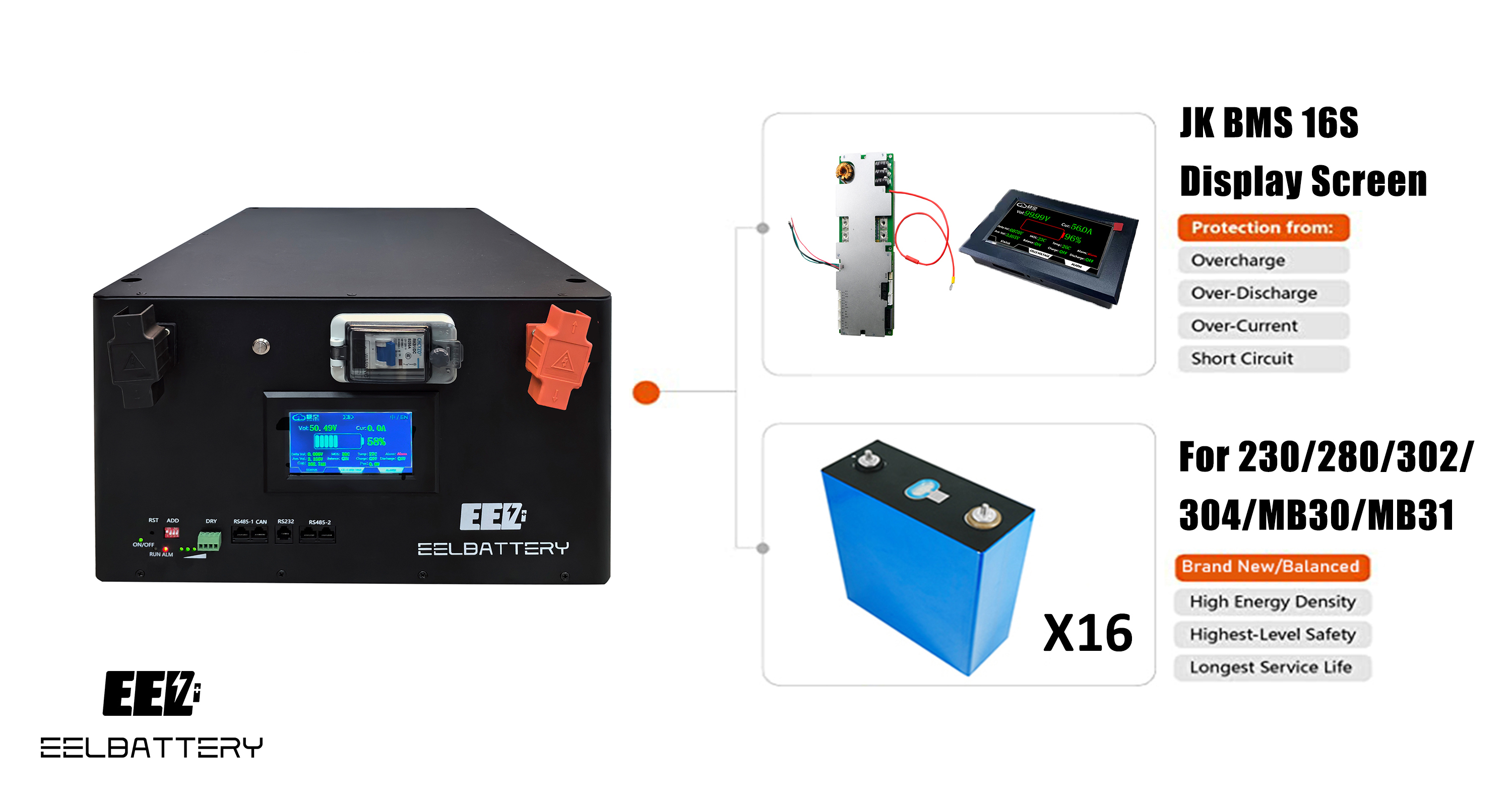 Our DIY battery box comes with the 16S JK New BMS with intelligent lithium lifepo4 battery module CANBUS/RS48 battery protection board. Cell BMS LCD Monitoring System